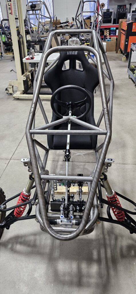 At the same time, our 3D printers produce detailed plastic prototypes of complex parts like engine mounts, rear spools, and custom brackets. This allows us to physically test fitment, clearances, ergonomics, and assembly sequences long before the first steel tube is cut.